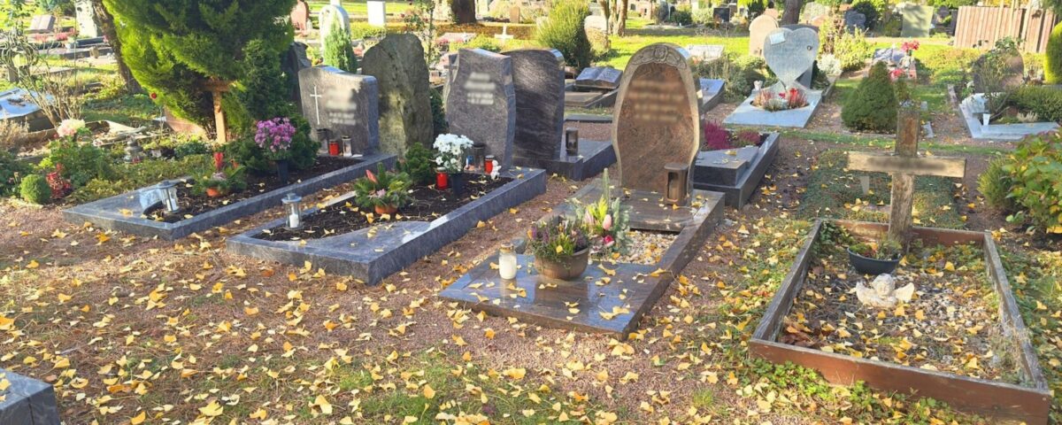 - Die Position der Grabstätte auf dem Friedhof kann nicht gewählt werden. Die Belegung erfolgt im jeweiligen Grabfeld der Reihe nach.